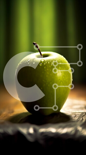 Intra Συλλεκτικό Ξύλινο Παζλ Plywood 4mm – Φρέσκο ​​πράσινο μήλο με σταγονίδια νερού σε έναν πίνακα – Φωτογραφία Αρχείου Σε Ξύλινο Κουτί – Διαστάσεις: 10×10 cm – 25 κομμάτια