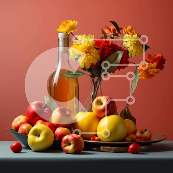Intra Συλλεκτικό Ξύλινο Παζλ Plywood 4mm – Φρουτοσύνθεση με κρασί και λουλούδια Σε Ξύλινο Κουτί – Διαστάσεις: 10×10 cm – 25 κομμάτια