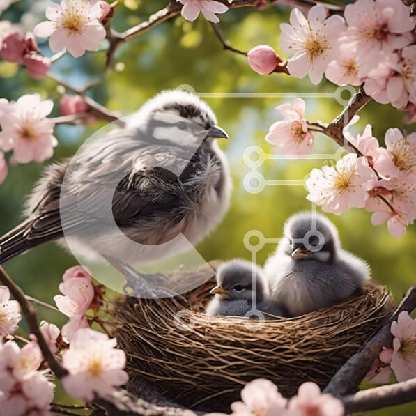 Intra Συλλεκτικό Ξύλινο Παζλ Plywood 4mm – Φωλιά πουλιών με νεοσσούς και ροζ άνθη Σε Ξύλινο Κουτί – Διαστάσεις: 10×10 cm – 25 κομμάτια