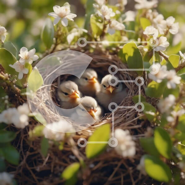 Intra Συλλεκτικό Ξύλινο Παζλ Plywood 4mm – Φωλιά πουλιών με νεαρούς νεοσσούς και λευκά λουλούδια Σε Ξύλινο Κουτί – Διαστάσεις: 10×10 cm – 25 κομμάτια