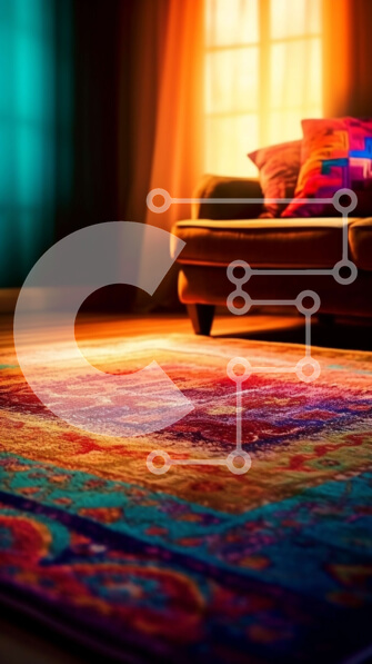 Intra Συλλεκτικό Ξύλινο Παζλ Plywood 4mm – Φωτεινό και πολύχρωμο σαλόνι με χαλί με μοτίβο λουλουδιών και κόκκινο καναπέ Σε Ξύλινο Κουτί – Διαστάσεις Puzzle: 10×10 cm – 25 κομμάτια