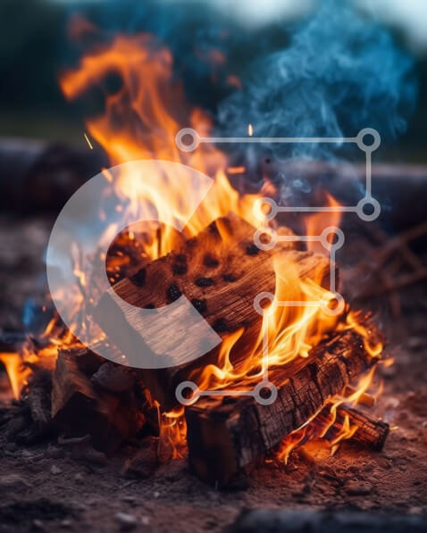 Intra Συλλεκτικό Ξύλινο Παζλ Plywood 4mm – Φωτιά με αναμμένα κούτσουρα και γαλάζιες φλόγες στη φύση Σε Ξύλινο Κουτί – Διαστάσεις: 10×10 cm – 25 κομμάτια