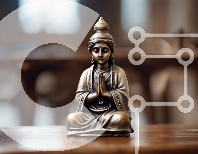 Intra Συλλεκτικό Ξύλινο Παζλ Plywood 4mm – Χάλκινο άγαλμα του Βούδα στο τραπέζι βελανιδιάς Σε Ξύλινο Κουτί – Διαστάσεις Puzzle: 10×10 cm – 25 κομμάτια