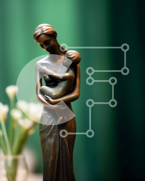 Intra Συλλεκτικό Ξύλινο Παζλ Plywood 4mm – Χάλκινο άγαλμα μεγαλύτερης γυναίκας που κρατά το παιδί με λευκά βάζα και τουλίπες Σε Ξύλινο Κουτί – Διαστάσεις Puzzle: 10×10 cm – 25 κομμάτια