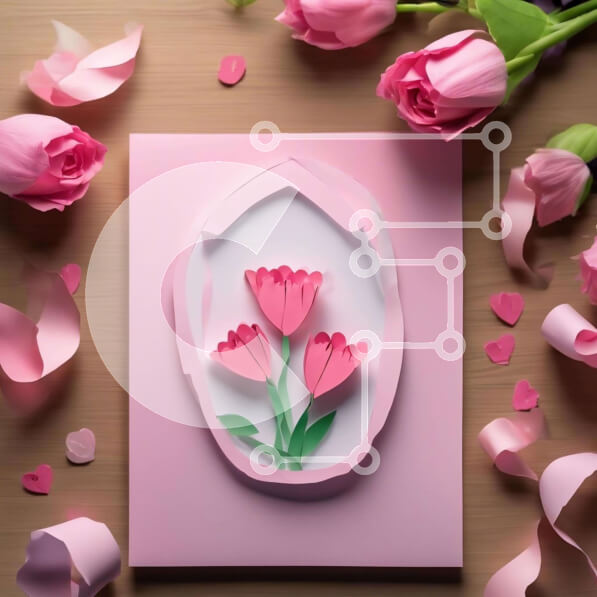 Intra Συλλεκτικό Ξύλινο Παζλ Plywood 4mm – Χάρτινο κόψιμο σε σχήμα καρδιάς με ροζ τουλίπες και κορδέλες Σε Ξύλινο Κουτί – Διαστάσεις: 10×10 cm – 25 κομμάτια