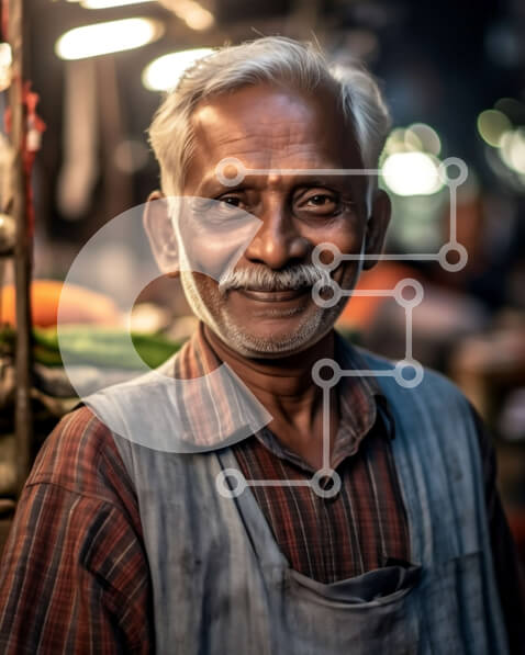 Intra Συλλεκτικό Ξύλινο Παζλ Plywood 4mm – Χαμογελαστός ηλικιωμένος στην ποδιά και το μουστάκι του πάγκου της αγοράς Σε Ξύλινο Κουτί – Διαστάσεις Puzzle: 10×10 cm – 25 κομμάτια
