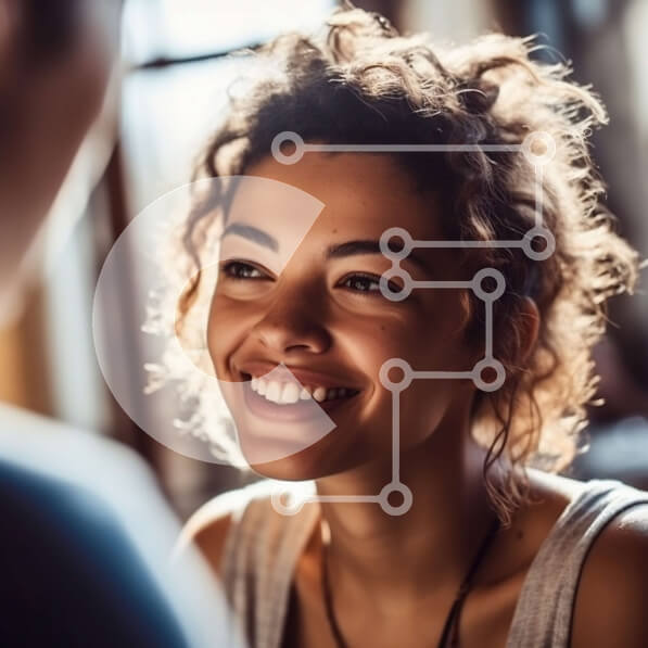 Intra Συλλεκτικό Ξύλινο Παζλ Plywood 4mm – Χαμογελώντας γυναίκα και άνδρας που συνομιλούν σε ένα τραπέζι καφέ Σε Ξύλινο Κουτί – Διαστάσεις Puzzle: 10×10 cm – 25 κομμάτια
