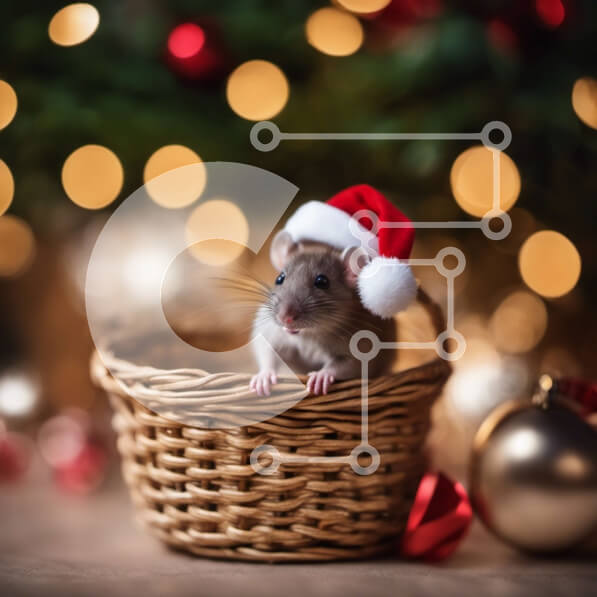Intra Συλλεκτικό Ξύλινο Παζλ Plywood 4mm – Χαριτωμένος αρουραίος με καπέλο Άγιου Βασίλη σε εορταστική σκηνή διακοπών Σε Ξύλινο Κουτί – Διαστάσεις: 10×10 cm – 25 κομμάτια