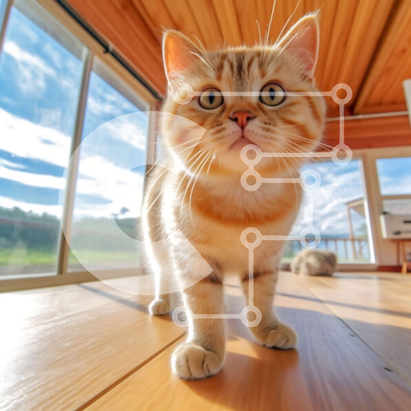 Intra Συλλεκτικό Ξύλινο Παζλ Plywood 4mm – Χαριτωμένη και αφράτη γάτα κοιτάζει επίμονα την κάμερα με φόντο με θέα στο βουνό Σε Ξύλινο Κουτί – Διαστάσεις: 10×10 cm – 25 κομμάτια