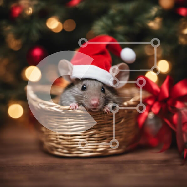 Intra Συλλεκτικό Ξύλινο Παζλ Plywood 4mm – Χαριτωμένος αρουραίος με καπέλο Άγιου Βασίλη με χριστουγεννιάτικο δέντρο Σε Ξύλινο Κουτί – Διαστάσεις: 10×10 cm – 25 κομμάτια