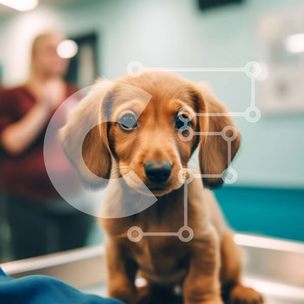 Intra Συλλεκτικό Ξύλινο Παζλ Plywood 4mm – Χαριτωμένο κουτάβι Dachshund που κάθεται σε μεταλλικό τραπέζι στην κτηνιατρική κλινική Σε Ξύλινο Κουτί – Διαστάσεις: 10×10 cm – 25 κομμάτια