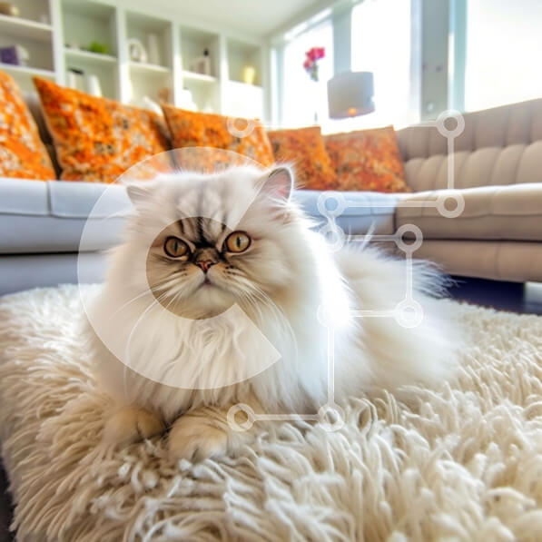 Intra Συλλεκτικό Ξύλινο Παζλ Plywood 4mm – Χαριτωμένη εικόνα μιας χνουδωτής λευκής γάτας σε ένα άνετο σαλόνι Σε Ξύλινο Κουτί – Διαστάσεις: 10×10 cm – 25 κομμάτια