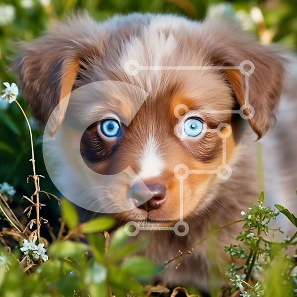 Intra Συλλεκτικό Ξύλινο Παζλ Plywood 4mm – Χαριτωμένη εικόνα ενός κουταβιού σε ένα χωράφι με γρασίδι και λουλούδια Σε Ξύλινο Κουτί – Διαστάσεις: 10×10 cm – 25 κομμάτια