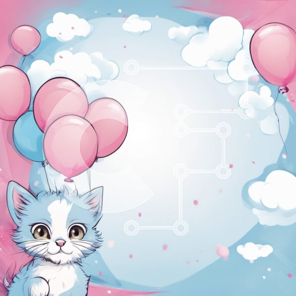 Intra Συλλεκτικό Ξύλινο Παζλ Plywood 4mm – Χαριτωμένο γατάκι με μπαλόνια σε ροζ και μπλε φόντο Σε Ξύλινο Κουτί – Διαστάσεις: 10×10 cm – 25 κομμάτια
