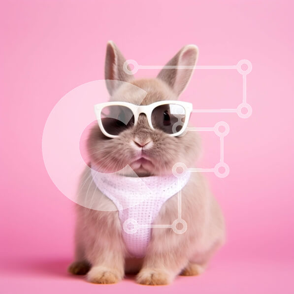 Intra Συλλεκτικό Ξύλινο Παζλ Plywood 4mm – Χαριτωμένο κουνέλι που κάθεται σε ροζ φόντο με γυαλιά ηλίου Σε Ξύλινο Κουτί – Διαστάσεις: 10×10 cm – 25 κομμάτια