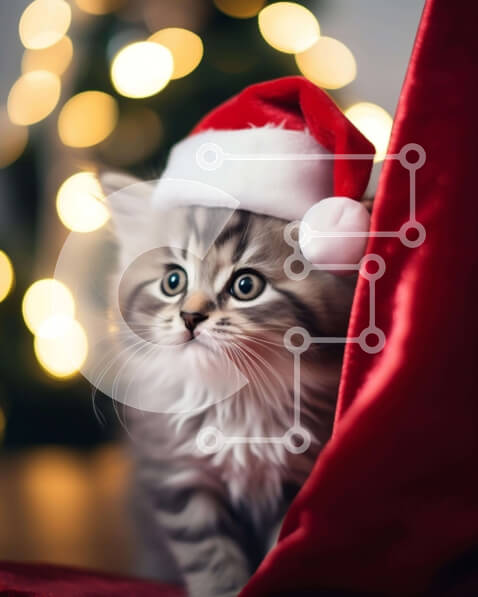 Intra Συλλεκτικό Ξύλινο Παζλ Plywood 4mm – Χαριτωμένο γατάκι με καπέλο Άγιου Βασίλη Σε Ξύλινο Κουτί – Διαστάσεις: 10×10 cm – 25 κομμάτια