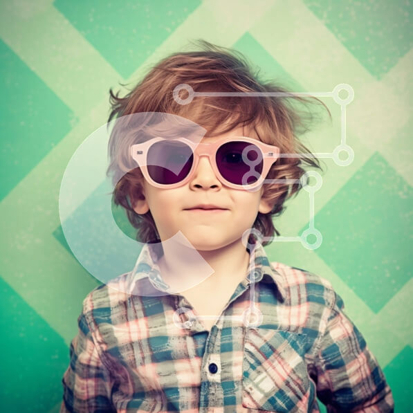 Intra Συλλεκτικό Ξύλινο Παζλ Plywood 4mm – Χαριτωμένη φωτογραφία ενός νεαρού αγοριού με ροζ γυαλιά ηλίου και καρό πουκάμισο Σε Ξύλινο Κουτί – Διαστάσεις Puzzle: 10×10 cm – 25 κομμάτια