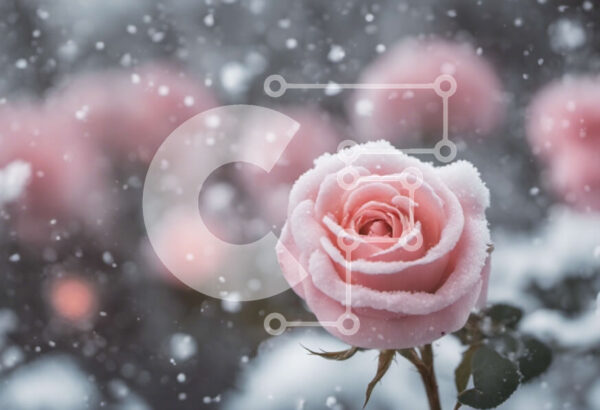 Intra Συλλεκτικό Ξύλινο Παζλ Plywood 4mm – Χειμερινό ανθισμένο ροζ τριαντάφυλλο στο χιόνι Σε Ξύλινο Κουτί – Διαστάσεις: 10×10 cm – 25 κομμάτια