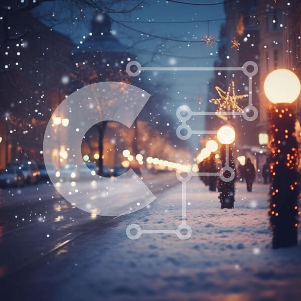 Intra Συλλεκτικό Ξύλινο Παζλ Plywood 4mm – Χιονισμένος δρόμος με φώτα και διακοσμήσεις Σε Ξύλινο Κουτί – Διαστάσεις Puzzle: 10×10 cm – 25 κομμάτια