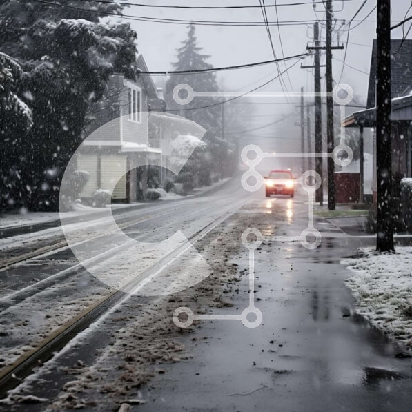 Intra Συλλεκτικό Ξύλινο Παζλ Plywood 4mm – Χιονισμένος δρόμος με αυτοκίνητα και ανθρώπους Σε Ξύλινο Κουτί – Διαστάσεις Puzzle: 10×10 cm – 25 κομμάτια