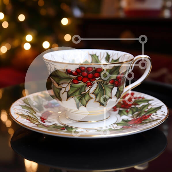 Intra Συλλεκτικό Ξύλινο Παζλ Plywood 4mm – Χριστουγεννιάτικο φλιτζάνι και πιατάκι με μούρα πουρνάρι και χριστουγεννιάτικα λαμπάκια Σε Ξύλινο Κουτί – Διαστάσεις: 10×10 cm – 25 κομμάτια