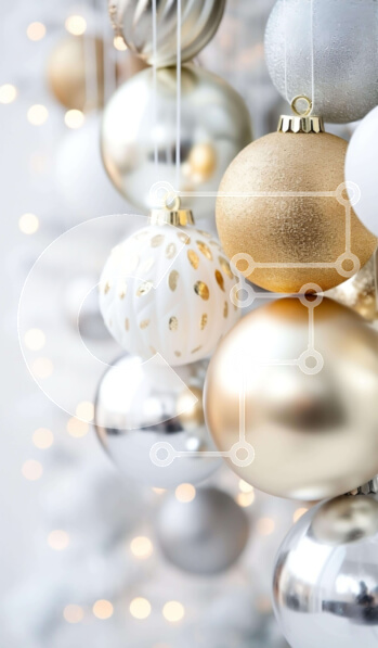 Intra Συλλεκτικό Ξύλινο Παζλ Plywood 4mm – Χρυσά και ασημένια στολίδια που κρέμονται σε λευκό φόντο Σε Ξύλινο Κουτί – Διαστάσεις: 10×10 cm – 25 κομμάτια