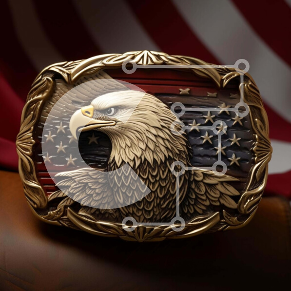 Intra Συλλεκτικό Ξύλινο Παζλ Plywood 4mm – Χρυσή πόρπη ζώνης με αετό στην αμερικανική σημαία Σε Ξύλινο Κουτί – Διαστάσεις: 10×10 cm – 25 κομμάτια