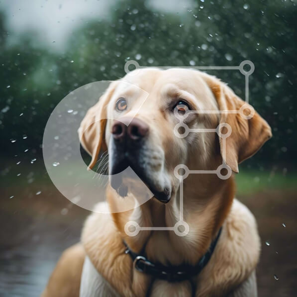 Intra Συλλεκτικό Ξύλινο Παζλ Plywood 4mm – Χρυσός σκύλος Λαμπραντόρ που κάθεται στη βροχή Σε Ξύλινο Κουτί – Διαστάσεις: 10×10 cm – 25 κομμάτια