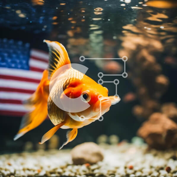 Intra Συλλεκτικό Ξύλινο Παζλ Plywood 4mm – Χρυσόψαρο που κολυμπά σε ενυδρείο με αμερικανική σημαία Σε Ξύλινο Κουτί – Διαστάσεις: 10×10 cm – 25 κομμάτια