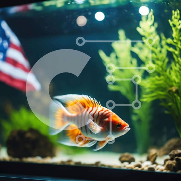 Intra Συλλεκτικό Ξύλινο Παζλ Plywood 4mm – Χρυσόψαρο που κολυμπά στο ενυδρείο με αμερικανική σημαία και φυτά Σε Ξύλινο Κουτί – Διαστάσεις: 10×10 cm – 25 κομμάτια
