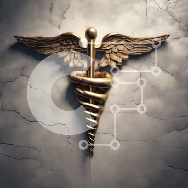 Intra Συλλεκτικό Ξύλινο Παζλ Plywood 4mm – Χρυσό ιατρικό σύμβολο κηρυκείου στον παλιό ραγισμένο τοίχο Σε Ξύλινο Κουτί – Διαστάσεις Puzzle: 10×10 cm – 25 κομμάτια