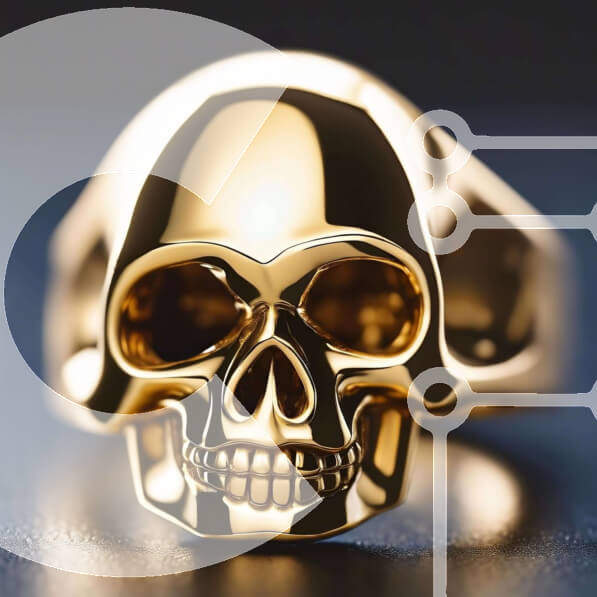 Intra Συλλεκτικό Ξύλινο Παζλ Plywood 4mm – Χρυσό κρανίο δαχτυλίδι σε μαύρο φόντο Σε Ξύλινο Κουτί – Διαστάσεις: 10×10 cm – 25 κομμάτια