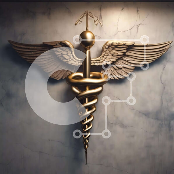 Intra Συλλεκτικό Ξύλινο Παζλ Plywood 4mm – Χρυσό σύμβολο κηρύκειο σε ιατρικό περιβάλλον Σε Ξύλινο Κουτί – Διαστάσεις Puzzle: 10×10 cm – 25 κομμάτια