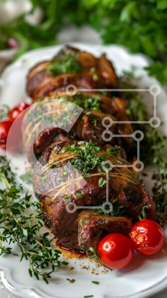 Intra Συλλεκτικό Ξύλινο Παζλ Plywood 4mm – Ψητό κρέας γαρνιρισμένο με βότανα και ντοματίνια Σε Ξύλινο Κουτί – Διαστάσεις: 10×10 cm – 25 κομμάτια
