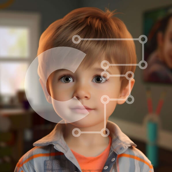 Intra Συλλεκτικό Ξύλινο Παζλ Plywood 4mm – Ψηφιακά αποδοθέν παιδί με πορτοκαλί πουκάμισο Σε Ξύλινο Κουτί – Διαστάσεις Puzzle: 10×10 cm – 25 κομμάτια