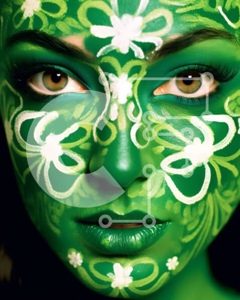 Intra Συλλεκτικό Ξύλινο Παζλ Plywood 4mm – Όμορφη γυναίκα με πράσινο χρώμα προσώπου και λευκά λουλούδια Σε Ξύλινο Κουτί – Διαστάσεις Puzzle: 10×10 cm – 25 κομμάτια