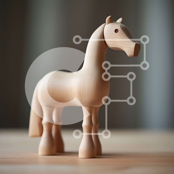Intra Συλλεκτικό Ξύλινο Παζλ Plywood 4mm – Όμορφη εικόνα ενός ξύλινου παιχνιδιού αλόγων σε ένα ρουστίκ ξύλινο τραπέζι Σε Ξύλινο Κουτί – Διαστάσεις: 10×10 cm – 25 κομμάτια