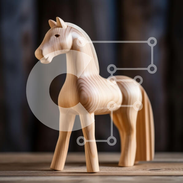 Intra Συλλεκτικό Ξύλινο Παζλ Plywood 4mm – Όμορφη εικόνα του ξύλινου παιχνιδιού αλόγων σε ένα ρουστίκ ξύλινο τραπέζι Σε Ξύλινο Κουτί – Διαστάσεις: 10×10 cm – 25 κομμάτια