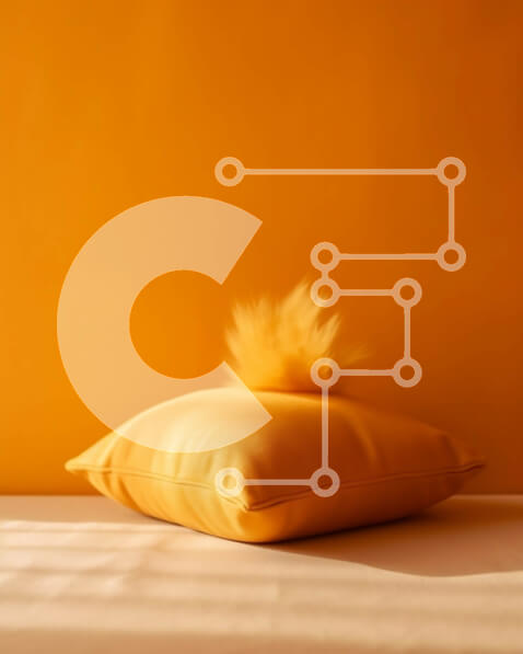 Intra Συλλεκτικό Ξύλινο Παζλ Plywood 4mm – Όμορφη εικόνα ενός κίτρινου μαξιλαριού με αφράτο πομ-πον σε λευκό τραπέζι μπροστά από φωτεινό πορτοκαλί τοίχο Σε Ξύλινο Κουτί – Διαστάσεις Puzzle: 10×10 cm – 25 κομμάτια