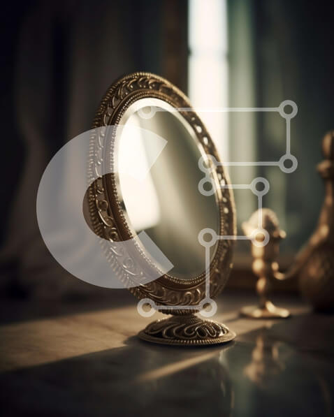 Intra Συλλεκτικό Ξύλινο Παζλ Plywood 4mm – Όμορφη εικόνα ενός καθρέφτη με χρυσό πλαίσιο και η αντανάκλαση μιας γυναίκας Σε Ξύλινο Κουτί – Διαστάσεις Puzzle: 10×10 cm – 25 κομμάτια