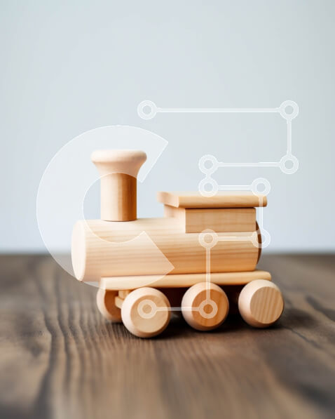 Intra Συλλεκτικό Ξύλινο Παζλ Plywood 4mm – Όμορφη εικόνα ενός ξύλινου τρένου παιχνιδιού σε ένα ξύλινο τραπέζι Σε Ξύλινο Κουτί – Διαστάσεις: 10×10 cm – 25 κομμάτια