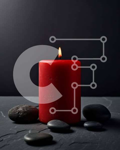 Intra Συλλεκτικό Ξύλινο Παζλ Plywood 4mm – Όμορφη εικόνα ενός κόκκινου κεριού σε σκούρο φόντο με μαύρες πέτρες Σε Ξύλινο Κουτί – Διαστάσεις: 10×10 cm – 25 κομμάτια