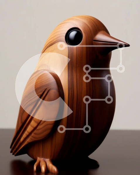 Intra Συλλεκτικό Ξύλινο Παζλ Plywood 4mm – Όμορφη εικόνα ενός ξύλινου αγάλματος πουλιού σε μια ρουστίκ ξύλινη επιφάνεια Σε Ξύλινο Κουτί – Διαστάσεις: 10×10 cm – 25 κομμάτια