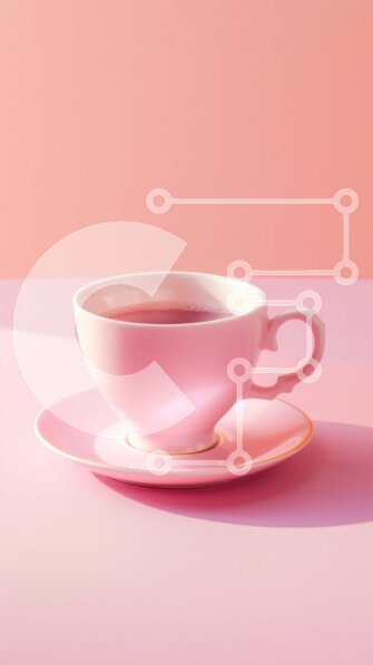 Intra Συλλεκτικό Ξύλινο Παζλ Plywood 4mm – Όμορφη εικόνα με ροζ φλιτζάνι τσαγιού και πιατάκι σε ροζ επιφάνεια Σε Ξύλινο Κουτί – Διαστάσεις: 10×10 cm – 25 κομμάτια