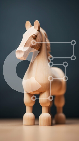 Intra Συλλεκτικό Ξύλινο Παζλ Plywood 4mm – Όμορφη εικόνα ξύλινου αγάλματος αλόγου σε σκοτεινό τραπέζι Σε Ξύλινο Κουτί – Διαστάσεις: 10×10 cm – 25 κομμάτια