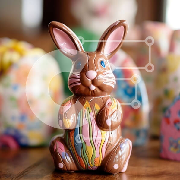 Intra Συλλεκτικό Ξύλινο Παζλ Plywood 4mm – Όμορφη εικόνα πασχαλινών διακοσμήσεων με σοκολατένιο λαγουδάκι και πολύχρωμα αυγά Σε Ξύλινο Κουτί – Διαστάσεις: 10×10 cm – 25 κομμάτια