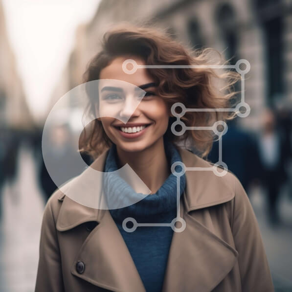 Intra Συλλεκτικό Ξύλινο Παζλ Plywood 4mm – Όμορφη εικόνα μιας χαμογελαστής νεαρής γυναίκας σε έναν πολυσύχναστο δρόμο της πόλης Σε Ξύλινο Κουτί – Διαστάσεις Puzzle: 10×10 cm – 25 κομμάτια