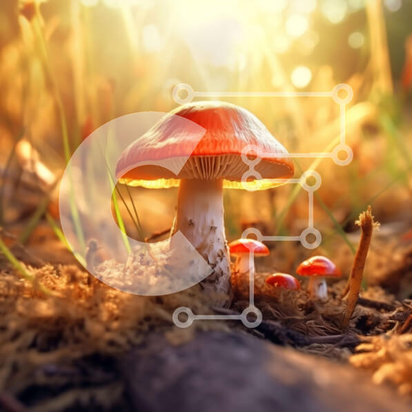 Intra Συλλεκτικό Ξύλινο Παζλ Plywood 4mm – Όμορφη εικόνα μιας ομάδας μανιταριών σε ένα δάσος στο ηλιοβασίλεμα Σε Ξύλινο Κουτί – Διαστάσεις: 10×10 cm – 25 κομμάτια