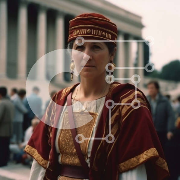 Intra Συλλεκτικό Ξύλινο Παζλ Plywood 4mm – Όμορφη εικόνα μιας γυναίκας με παραδοσιακή ενδυμασία που στέκεται μπροστά από ένα κτίριο με στήλες Σε Ξύλινο Κουτί – Διαστάσεις Puzzle: 10×10 cm – 25 κομμάτια