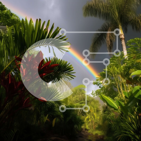 Intra Συλλεκτικό Ξύλινο Παζλ Plywood 4mm – Όμορφη εικόνα τροπικού τροπικού δάσους με πλούσια βλάστηση και ουράνιο τόξο Σε Ξύλινο Κουτί – Διαστάσεις: 10×10 cm – 25 κομμάτια